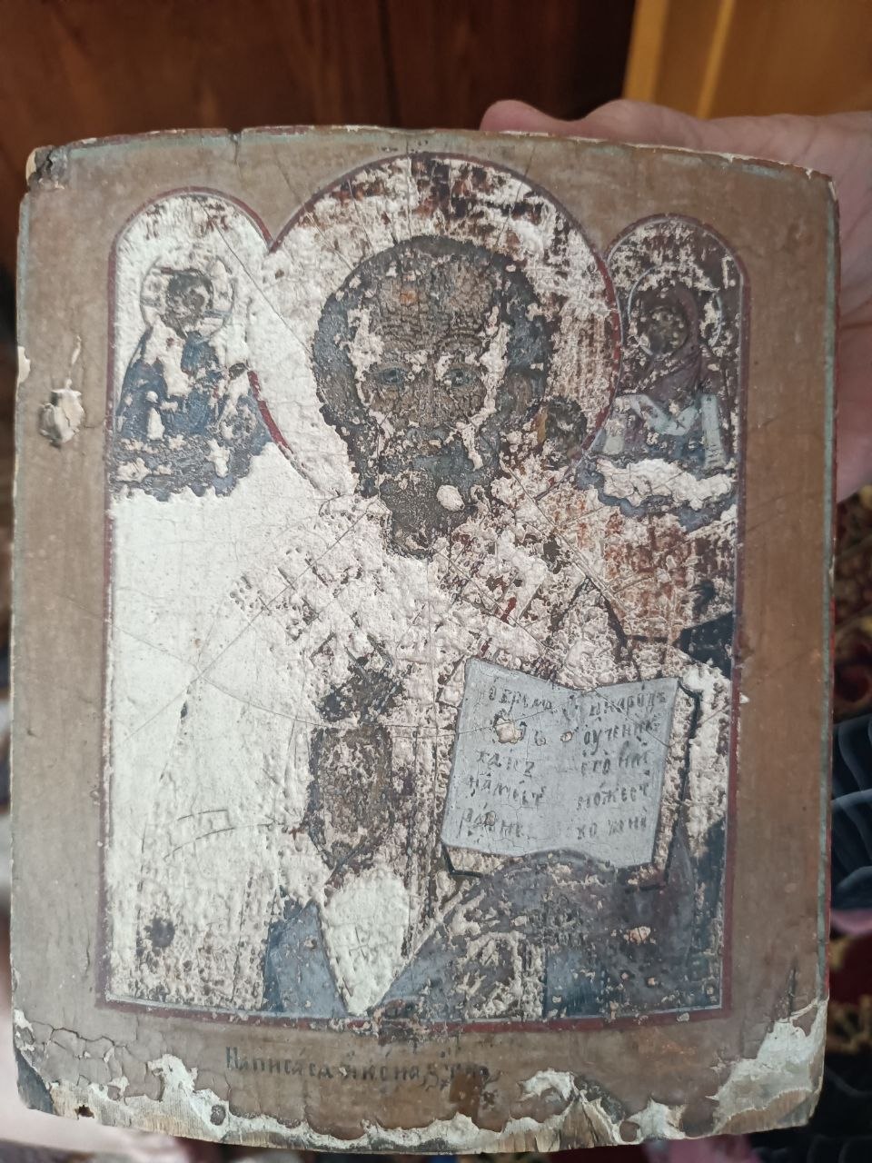 Добавлено на опознание: 2026-04-19 15:29:44 Владелец: Ppphhh1 Владелец доволен опознанием? Пока еще нет... Описание владельца: Икона Николая Чудотворца. Досталась по наследству от прабабушки, которая была старообрядчицей. Хотелось бы узнать год/век, когда эта икона могла быть написана |